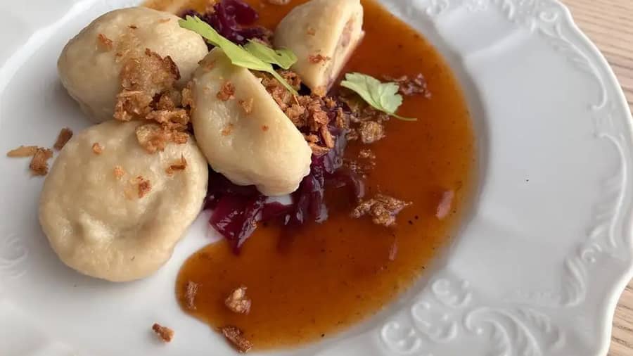 • Pečená kachna – Crispy roasted duck with cabbage and dumplings. Festive yet down-to-earth. Commonly found on traditional menus in Prague.