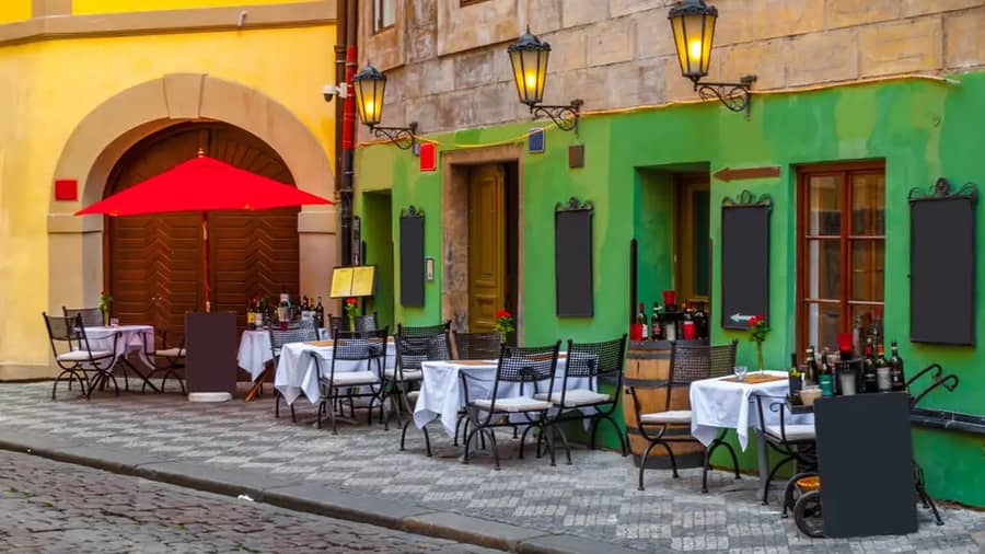 Prague does not concentrate its culinary scene in a single area. Food and drink are spread across neighborhoods, but especially along certain streets, squares and riverbanks where life naturally gathers.